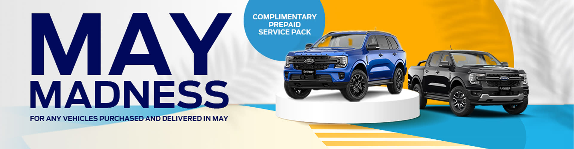 Get ready to accelerate into savings during Chadstone Ford's MAY MADNESS sale! Throughout the month of May, seize the opportunity to score unbeatable deals on our extensive selection of vehicles. Act fast though, as this offer is exclusively available for vehicles purchased and delivered this May! Plus, take advantage of a complimentary Prepaid service pack with your purchase, ensuring your vehicle stays in top-notch condition. Don't delay – visit Chadstone Ford today and make the most of MAY MADNESS before it's gone! T&C's Apply